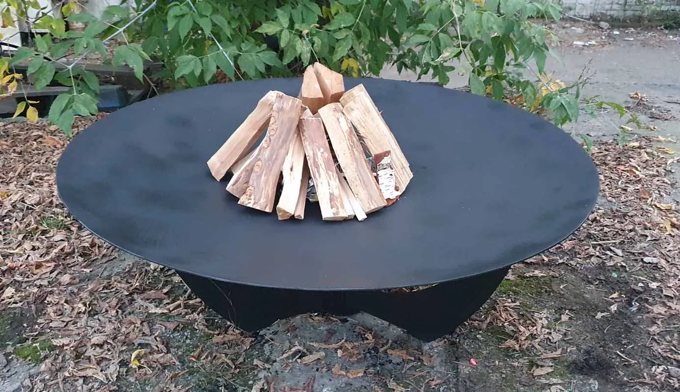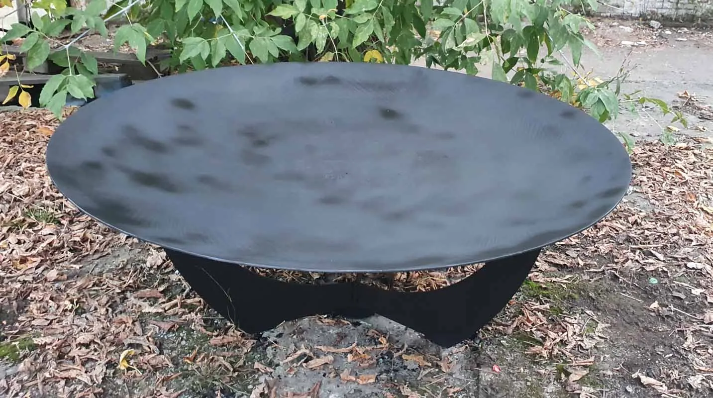 Диаметр костровой чаши 92 сантиметра, глубина чаши 10 сантиметров, толщина метала 6 миллиметров. Материал изготовления - конструкционная сталь марки Ст3.