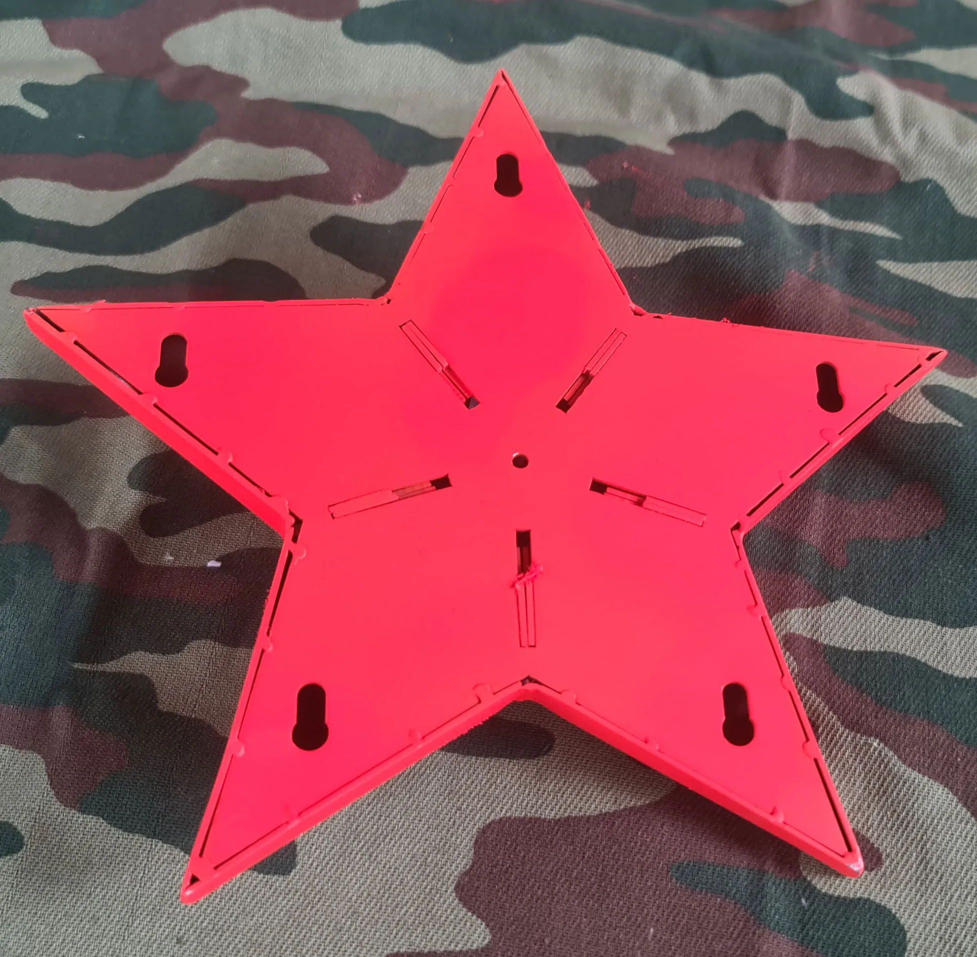 Предлагается к поставке красная звезда на памятник. Звезда изготавливается из нержавеющей стали с последующим окрашиванием изделия в красный цвет. С тыльной стороны звезды имеются отверстия для крепежа изделия на тело обелиска. Толщина стенок изделия от 1 до 3 мм. Диаметр звезды согласовывается с заказчиком, он может быть разным, от маленького 100 – 150 мм., до огромного 1500 мм. Звезда на памятник рассчитана для эксплуатации в любых климатических условиях. Изготавливается звезда на заказ в любом оттенке красного цвета.